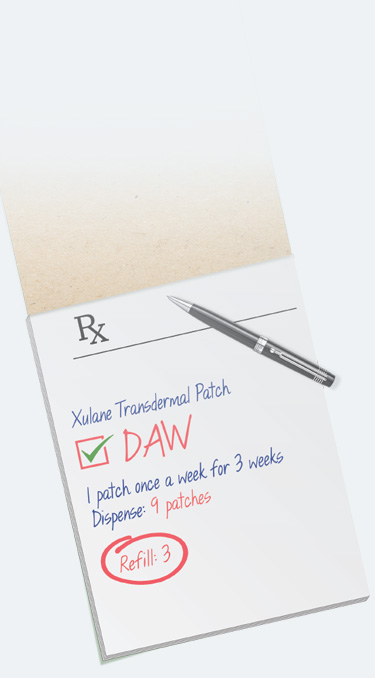 When you write DAW "Dispense as Written"* on your next XULANE prescription (as appropriate), you know your patients are receiving the same XULANE patch you prescribed — patch to patch.
